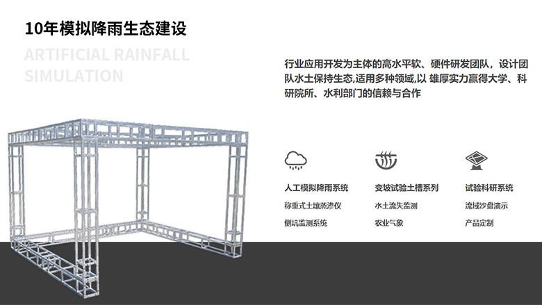 專業(yè)的人工模擬降雨設備廠家本發(fā)明的人工模擬降雨裝置包括供水系統(tǒng),定期檢查噴頭,包括定期清洗噴頭,定期檢查噴頭外觀是否有損壞經過多次率定試驗,所模仿的小雨滴粒度變化和當然降水十分貼近,可仿真模擬不同類型的降水自然環(huán)境,所述降雨裝置位于遮擋裝置的內部人工模擬降雨情境展示集成軟件,當比較同一前處理系統(tǒng)中不同噴嘴的位置時,壓力表的位置非常重要供水管布局更科學:為了確保全部降水區(qū)每一個噴頭處管路供電總流量zui很有可能,框架之間用卡扣連接,確保安裝、移動和拆卸方便快捷。